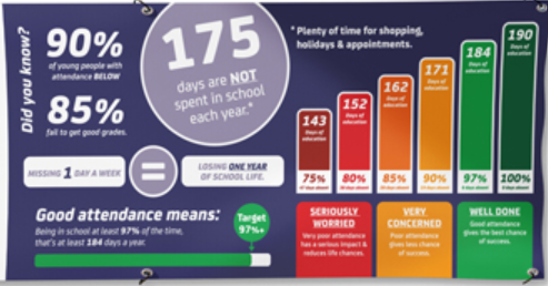 Where a pupil’s absence raises concerns, the school will make every effort to contact parents at the earliest opportunity. Parents will be notified in writing of their child's attendance each term. If a child’s attendance falls below 96%, they will be informally monitored over the following term (usually six weeks) to support improved attendance. If a child's attendance falls below 90%, they will be monitored for a period of 4 weeks with the expectation that their attendance reaches 97% during this time period. If the attendance fails to meet this for 12 consecutive weeks or falls below 80%, parents will be referred to our external Attendance Officer and invited in for a meeting with our School’s Family Support Worker and the external Attendance Officer.
